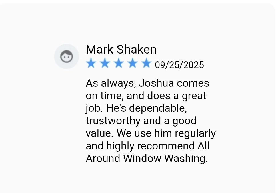 We hire Josh multiple times per year for window cleanings and then Christmas lights. He’s professional, kind, and does a good and thorough job. Highly recommend.